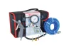 1 tuyau renforcé : 5 m, 1 soufflette, 1 poignée de gonflage homologuée CE en métal et 3 embouts de gonflage.