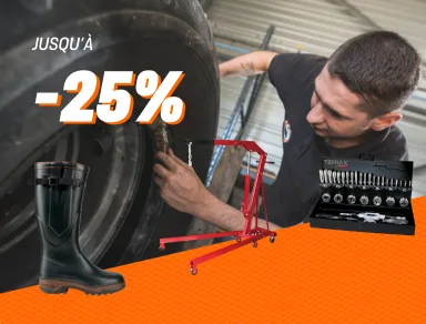 Les consommables d’atelier liés à la réparation des pneumatiques bénéficient également de remises jusqu’à -25%. Les produits de réparation pneus, solutions de dépannage crevaison et kits Kustine de la marque Tip Top permettent d’intervenir rapidement sur les matériels agricoles et véhicules, tout en limitant les coûts de maintenance.